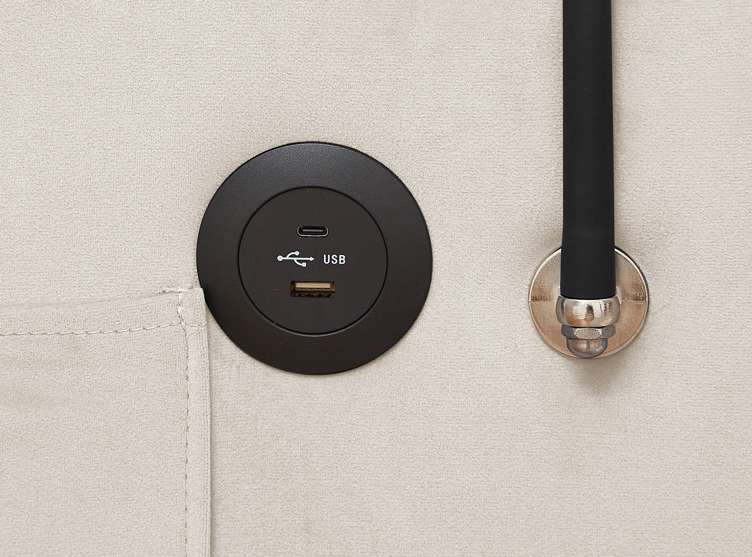 • USB Port: There are 1 USB charging port and 1 Type-C port on the right armrest of the sofa for various charging cables, which can provide continuous power supply for your phone. The convenient cup holders design on top of the front armrest can make you place drinks and cups.