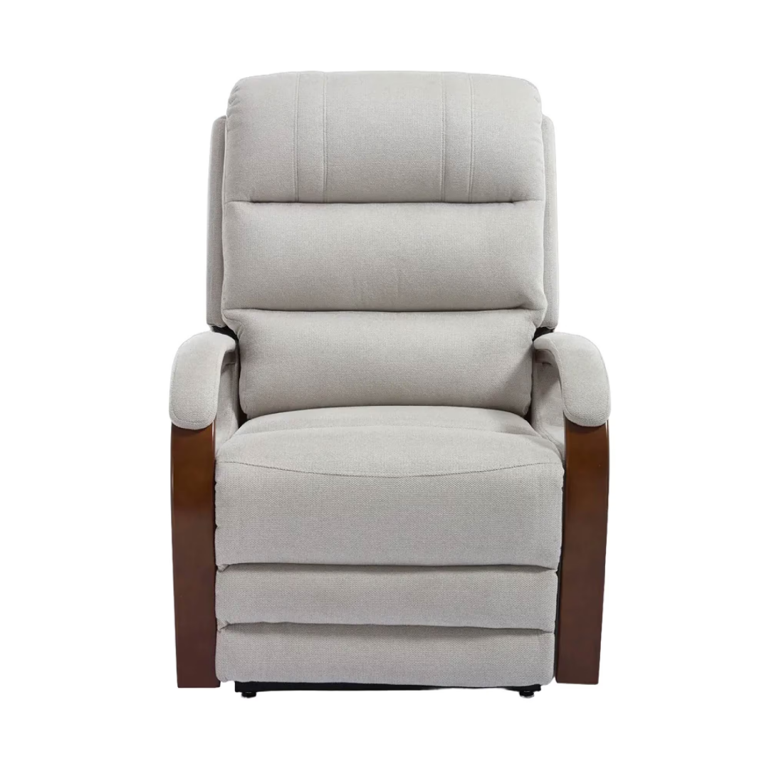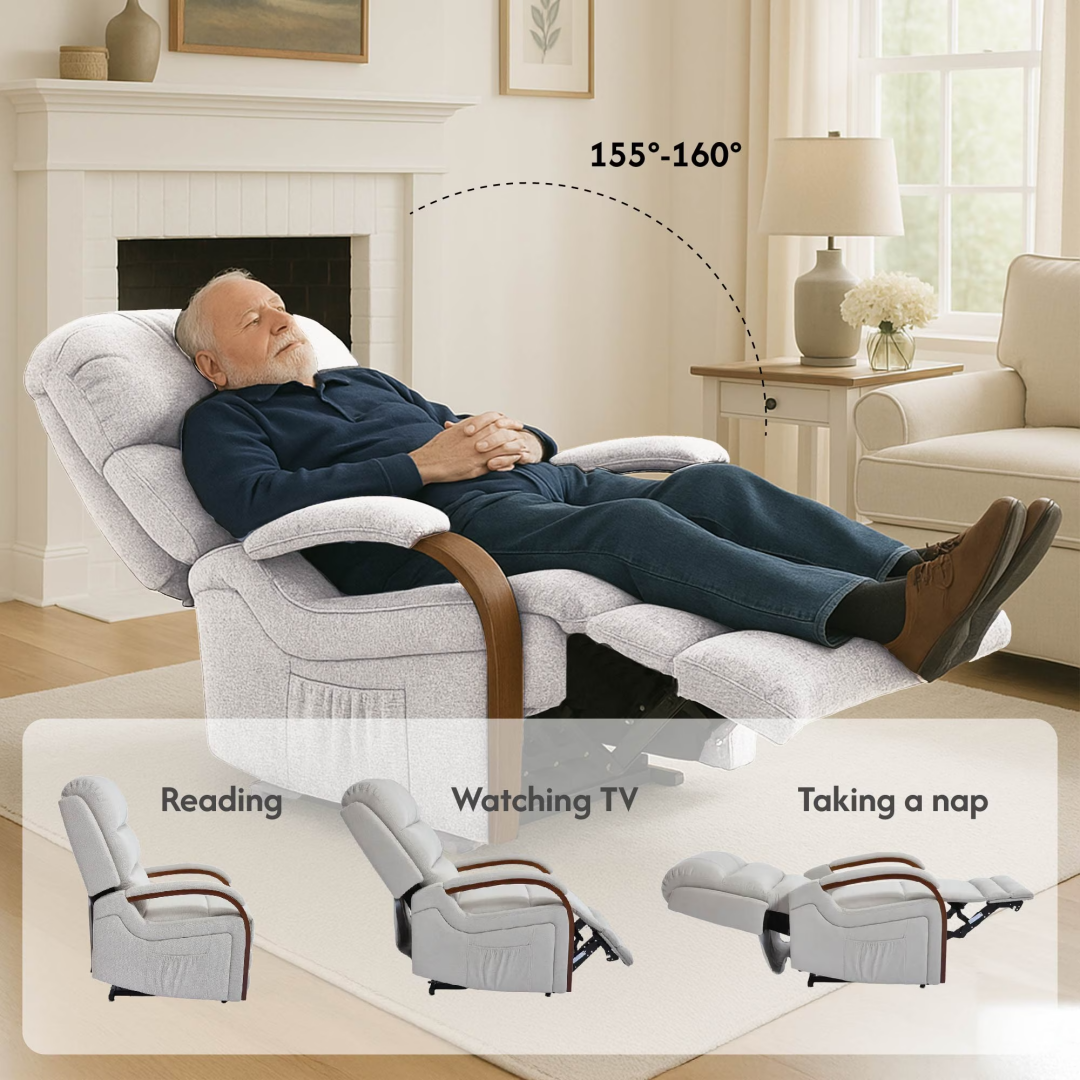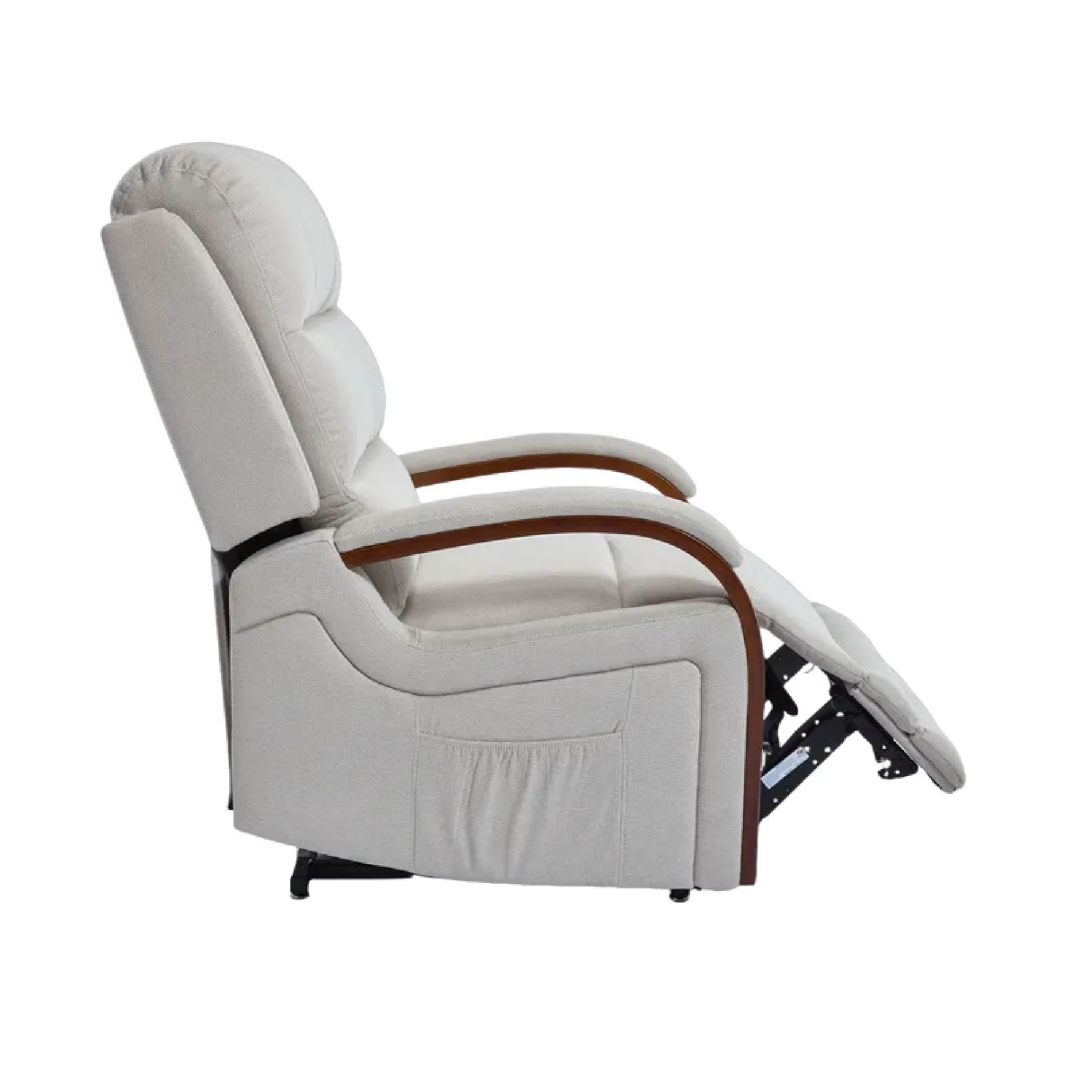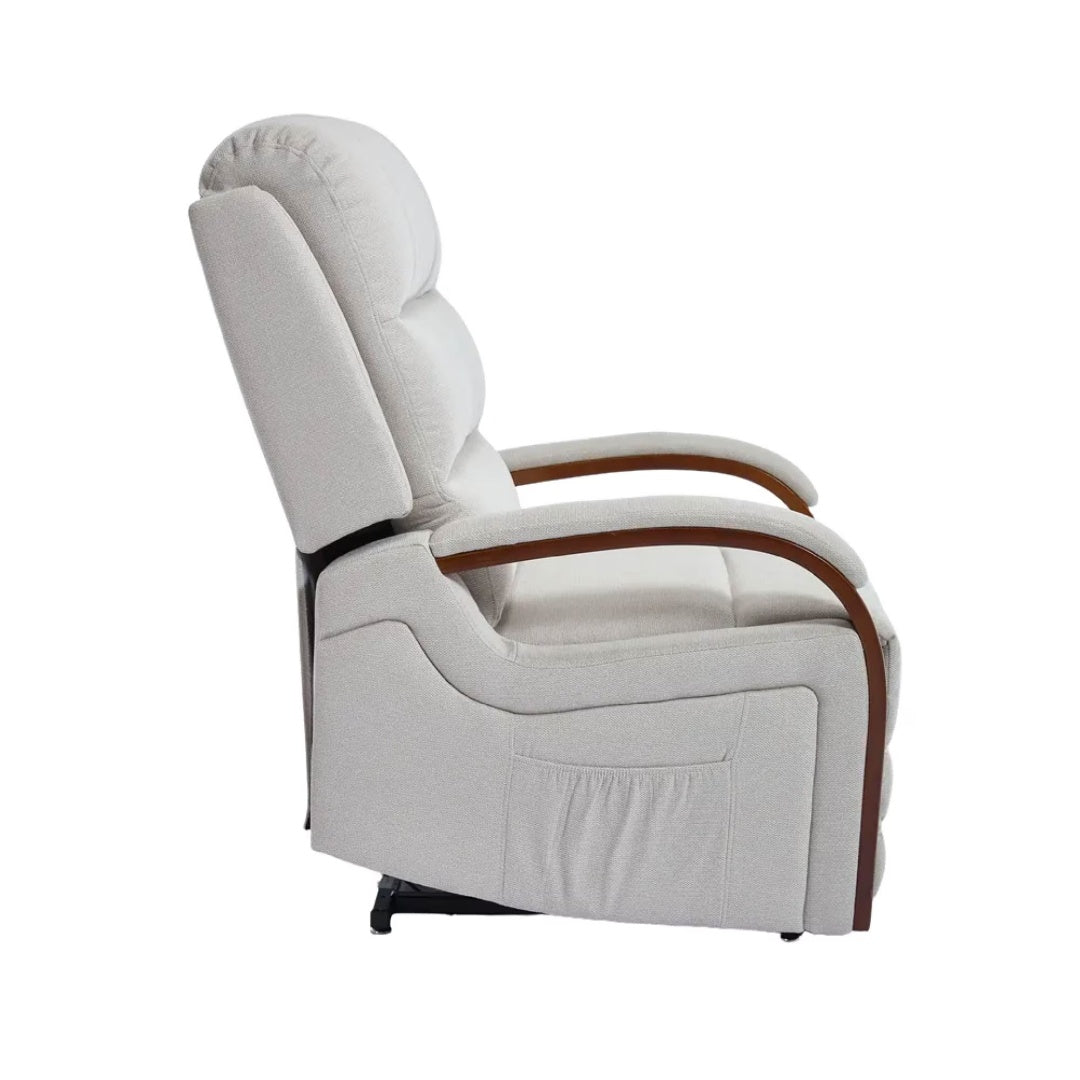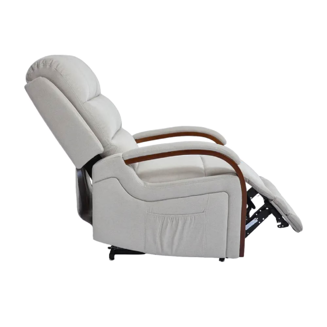 The electric recliner comes with spacious side pockets for storing your essentials within easy reach. The wooden armrests on both sides are ergonomically designed, offering both comfort and durability while preventing accidental bumps.