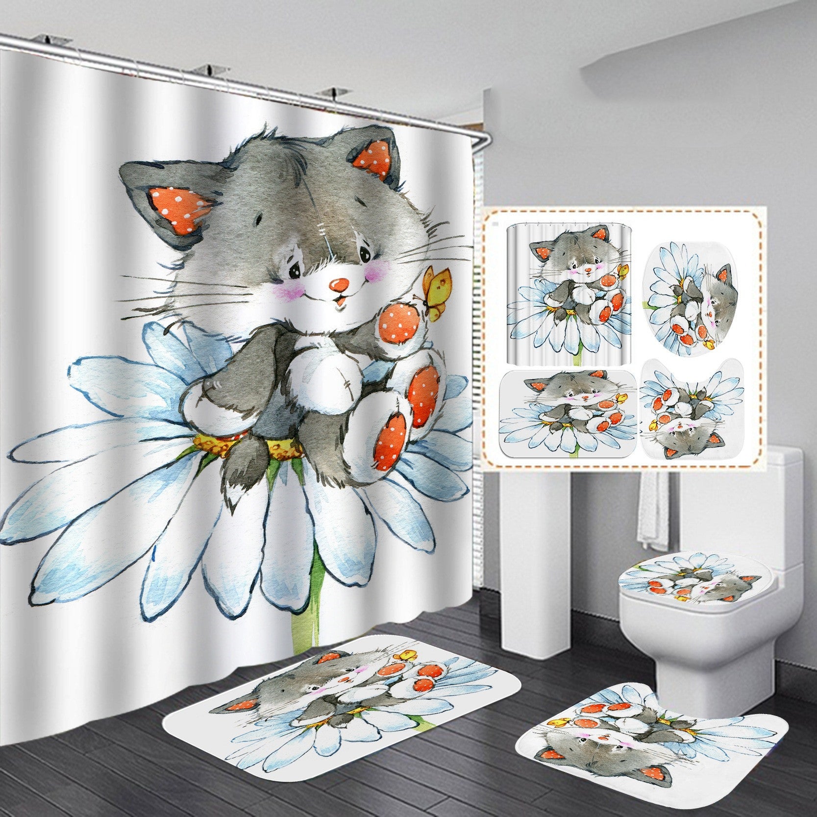 - Set Components: Shower curtain, toilet cover, U-shaped mat, floor mat (45*75cm).