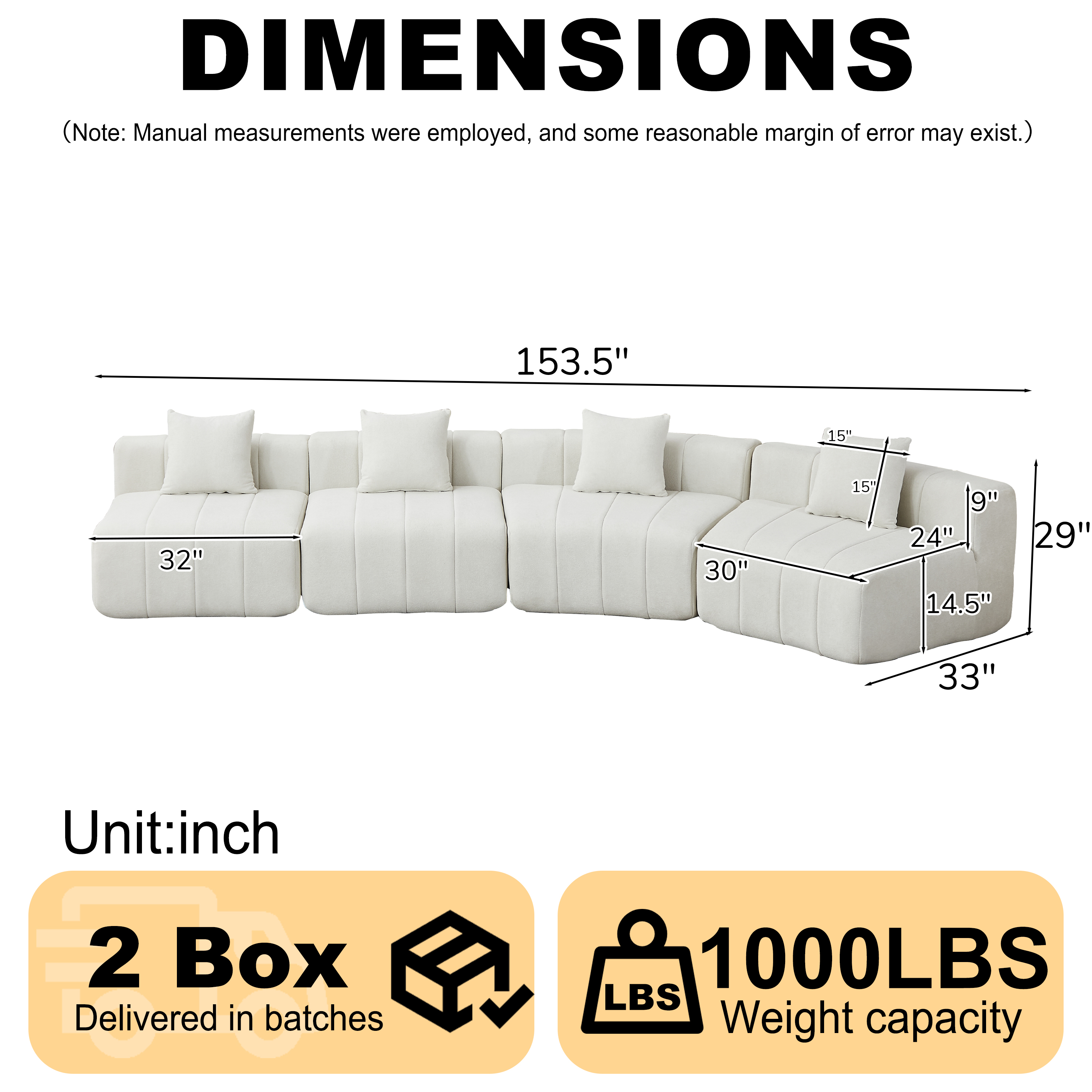 Chenille Curved Sectional Sofa With 4 Pillows,Curved Symmetrical Modular Sofa Sectional ,Two Curved Seats And Two Single Seats