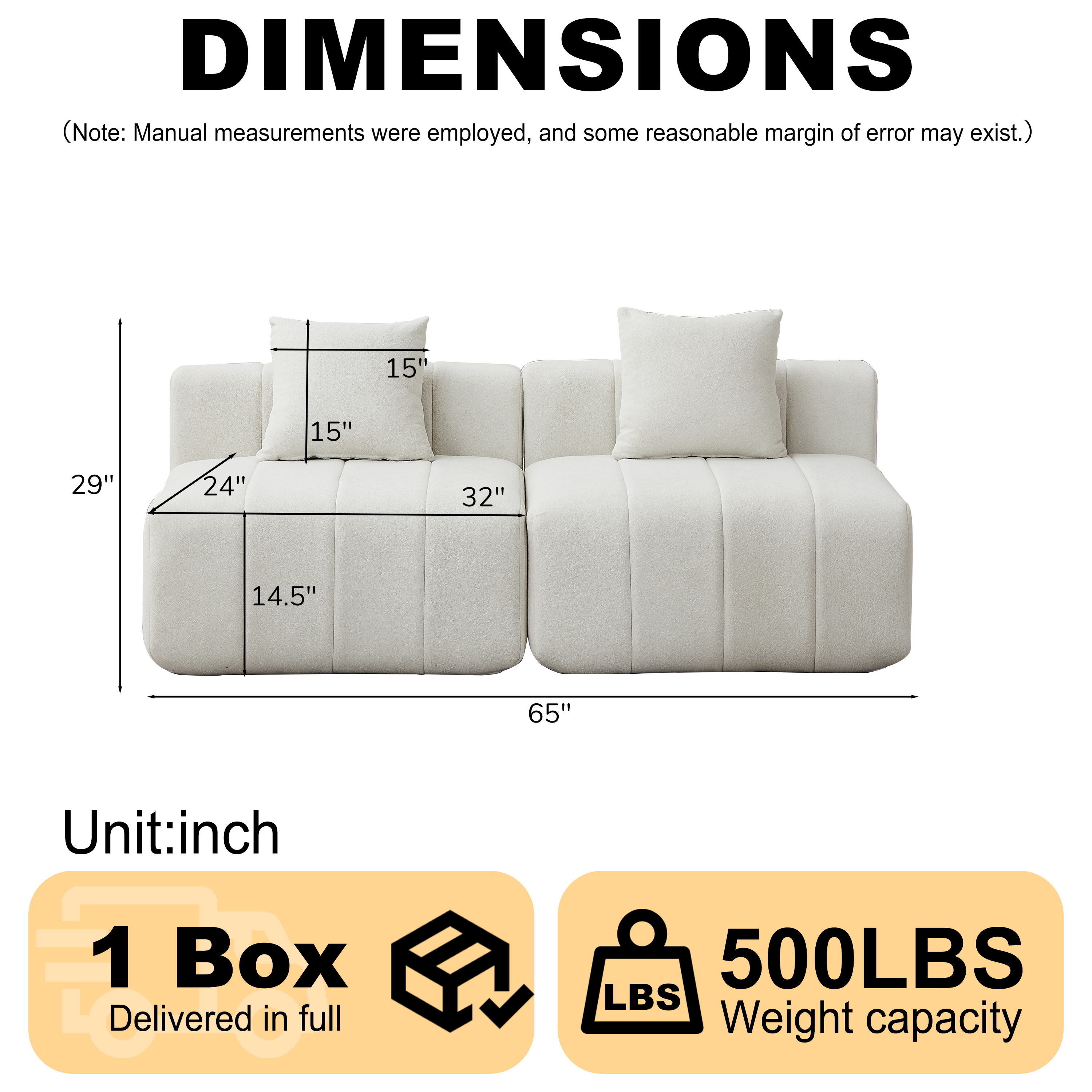 Chenille Sectional Sofa With 2 Pillows,Symmetrical Modular Sofa Sectional For Bedroom, Living Room, Office For Leisure Or Nap, Reading Room, And Lobby