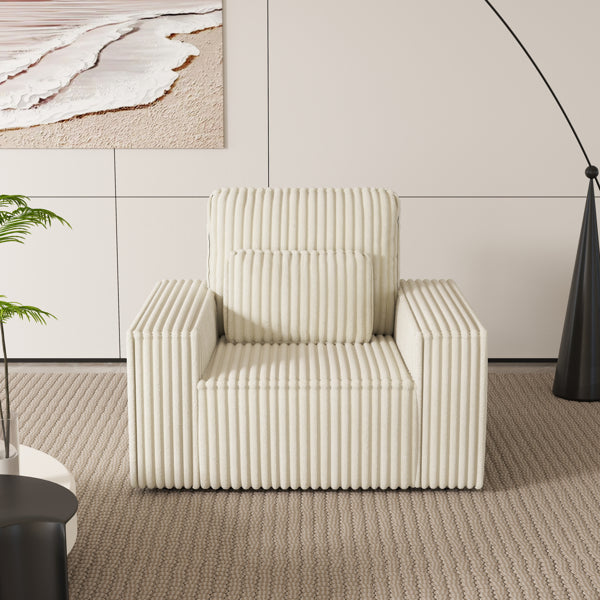 Corduroy Upholstered Armchair With Throw Pillow – Soft Single-Seat Lounge Chair For Cozy Corners, Plush Comfort