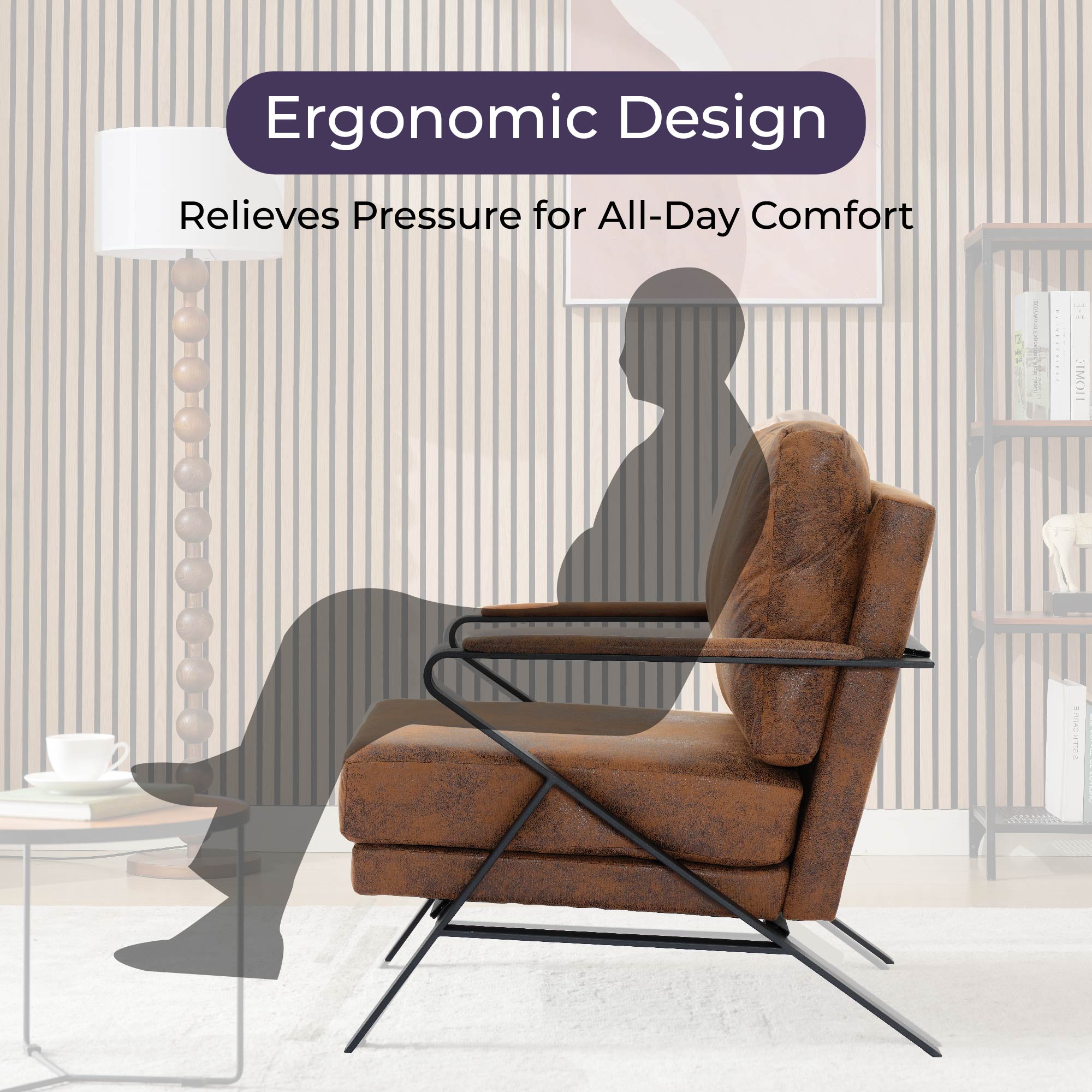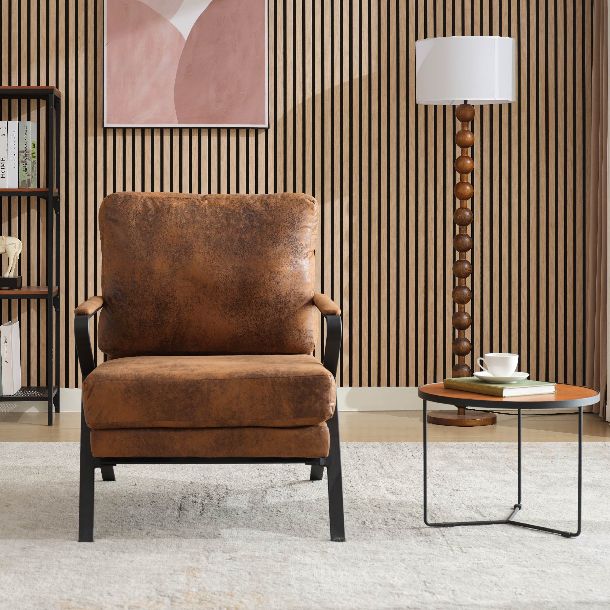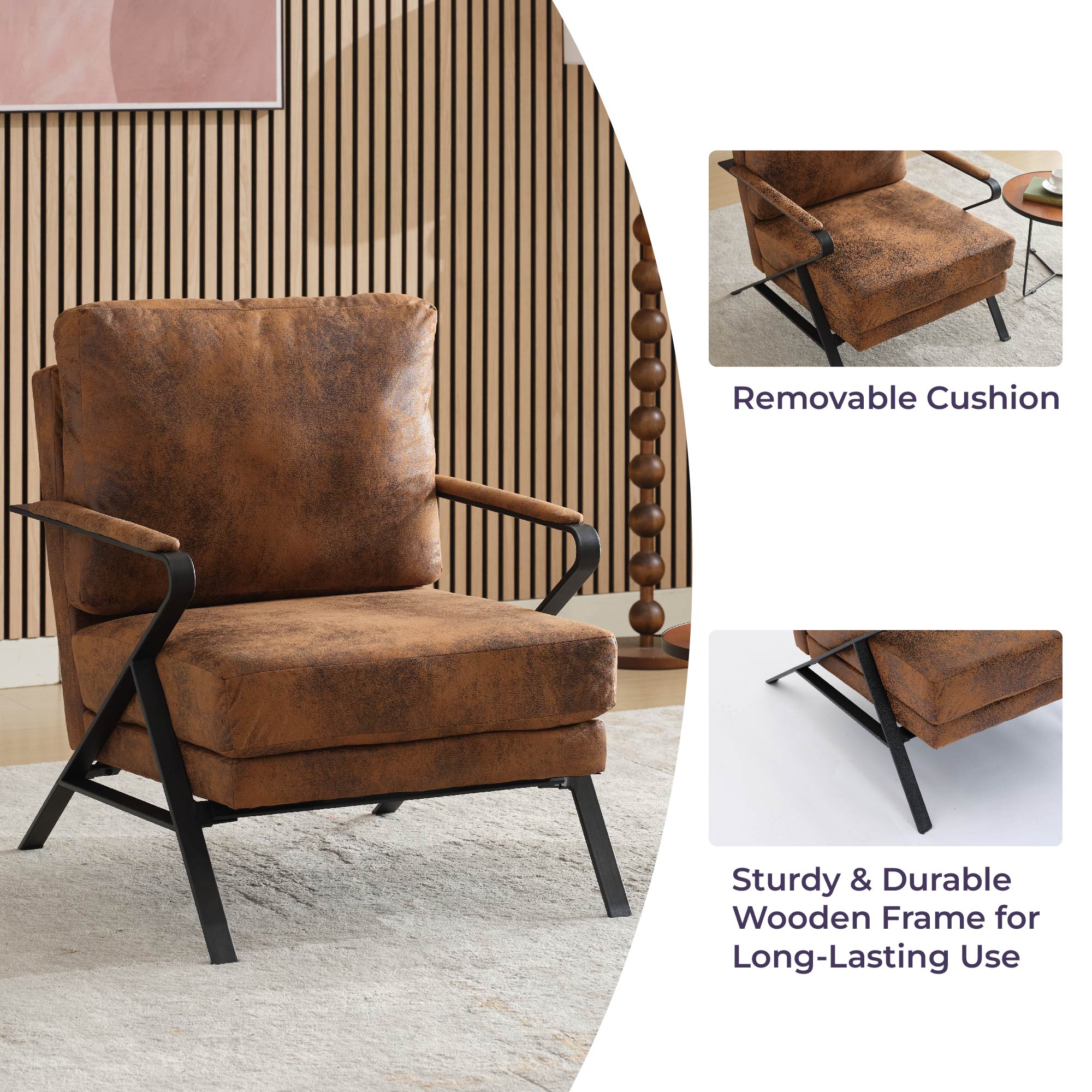 Product Name: Mid-Century Modern Chair Upholstered Lounge Arm Chair with Iron Frame and Thicker Cushion for Living Room, Reading, Balcony,Brown