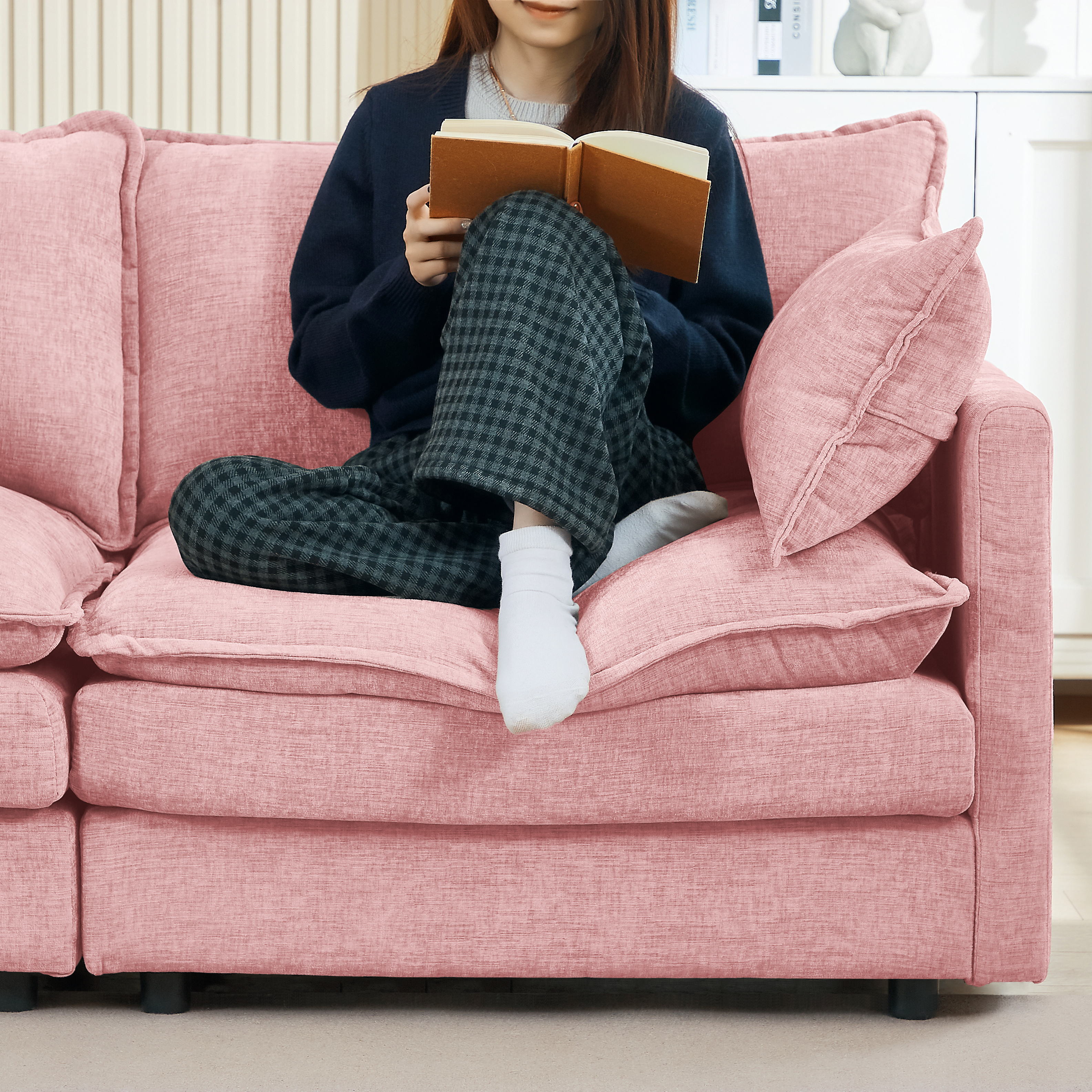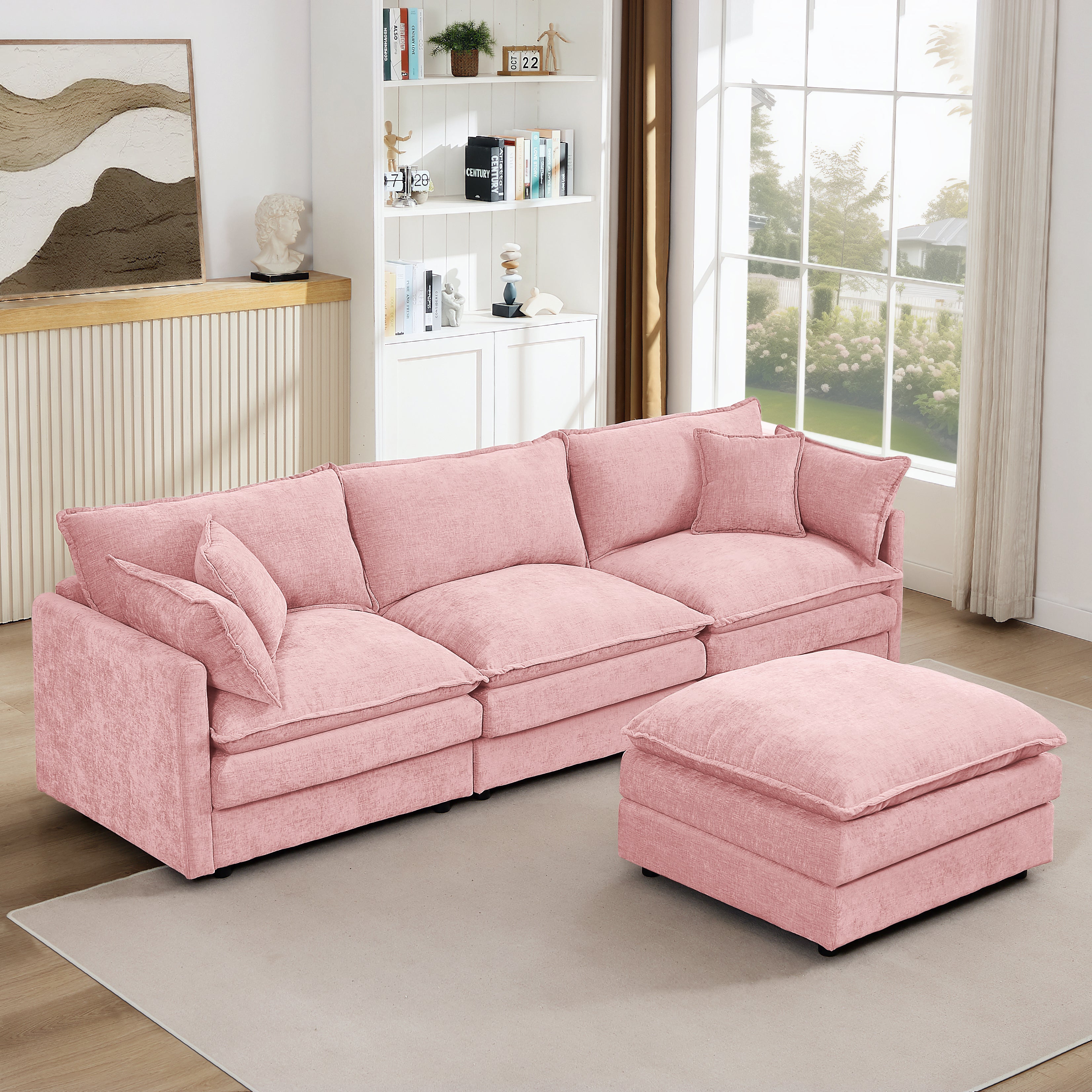 Product Name:Modular Sectional Sofa, 102 Inch L Shaped Couch Set for Living Room, 3-Seater Comfy Cloud Couches with Movable Ottoman, DIY Combination, Chenille, Pink
