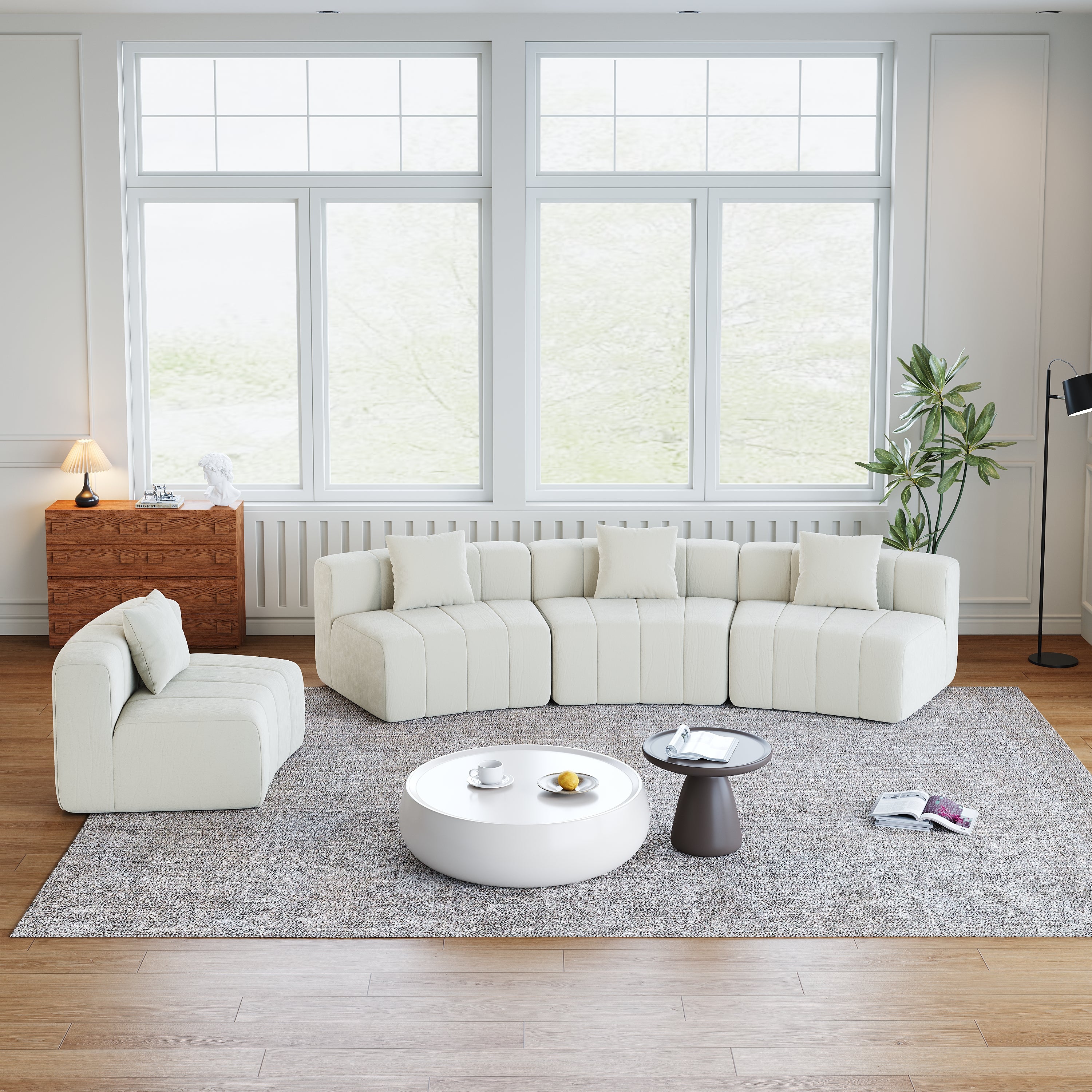 Chenille Curved Sectional Sofa With 4 Pillows,Curved Symmetrical Modular Semi Circular Sofa Sectional For Bedroom, Living Room, Office For Leisure Or Nap, Reading Room, And Lobby