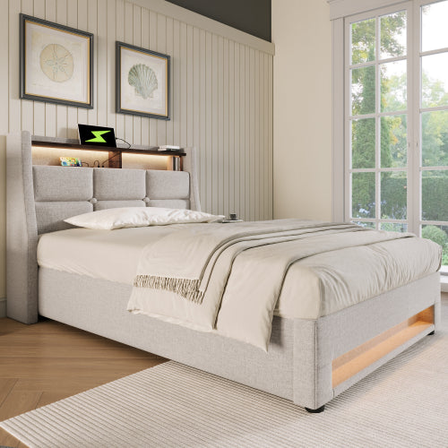 Product Name:Polsterbett mit USB 160x200cm,LED Doppelbett mit Lattenrost aus Metallrahmen,Bettgestell aus Leinenmaterial Jugendbett (Ohne Matratze)