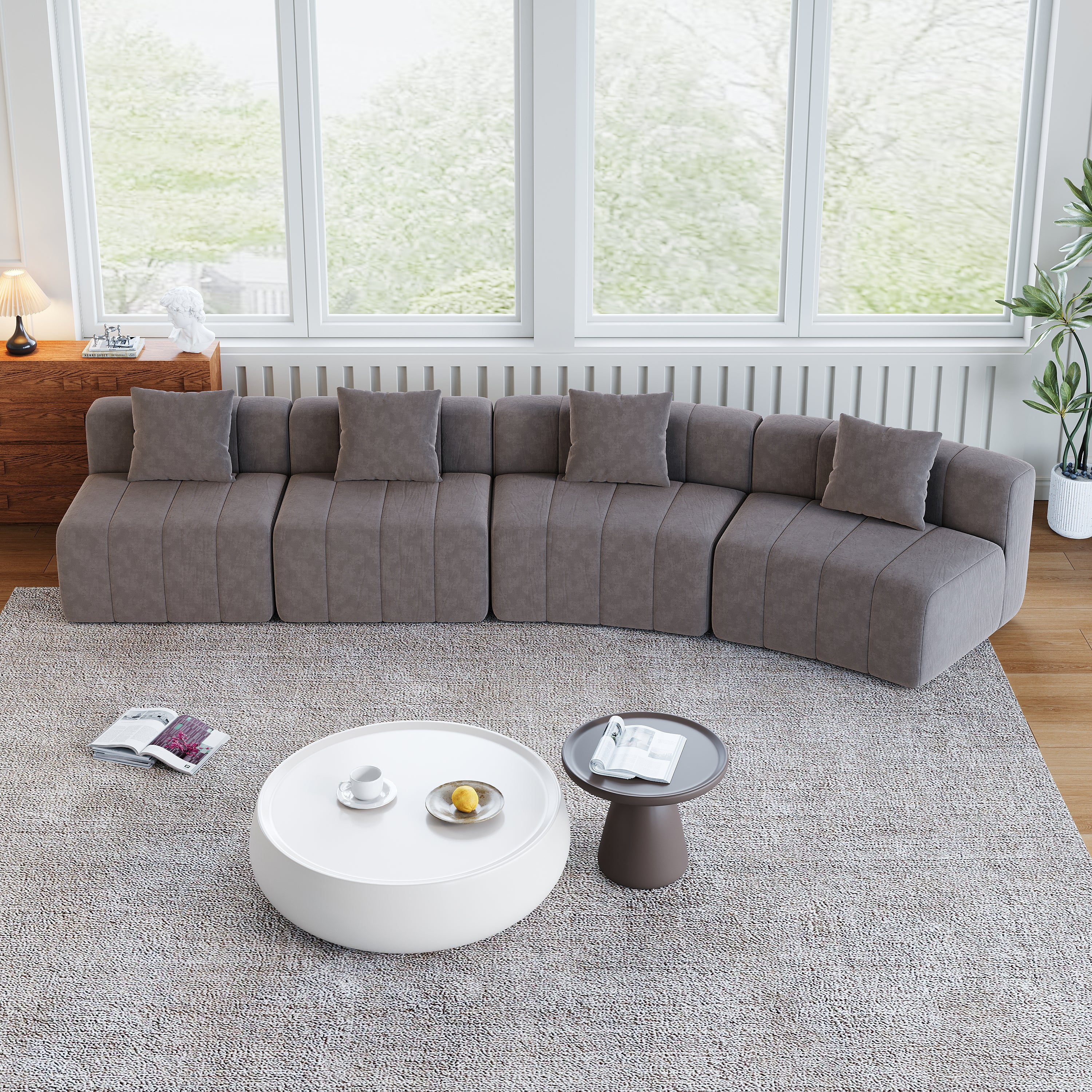 Chenille Curved Sectional Sofa With 4 Pillows,Curved Symmetrical Modular Sofa Sectional ,Two Curved Seats And Two Single Seats,Two Curved Seats And Two Single Seats