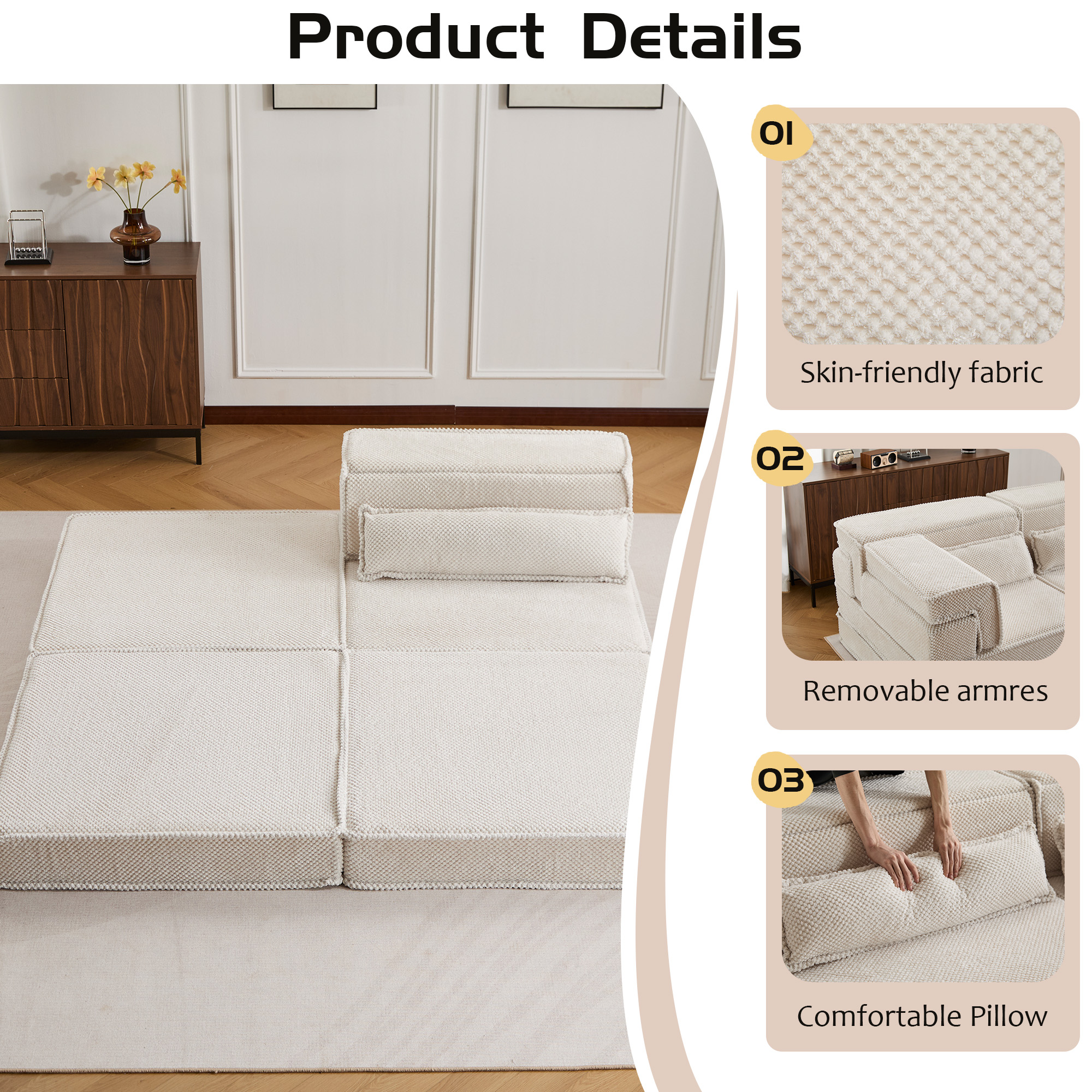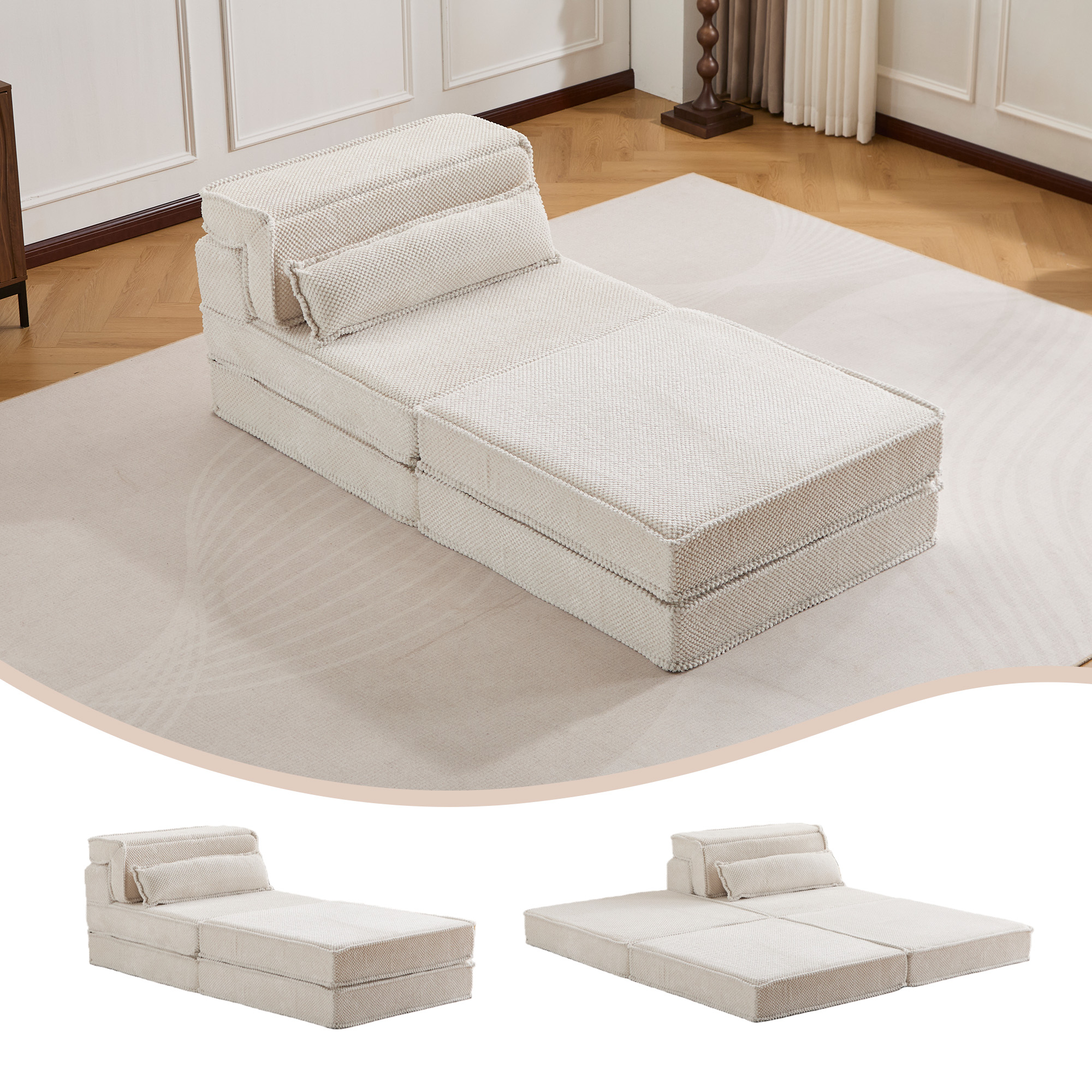 Product Name:Compression Mahjong Sofa,Convertible Floor Sofa Bed,DIY Boneless Modular Sectional Sofa,No Assembly Required,Circle fleece fabric,Oversized Single Seater with 1 Pillow and 1 Ottoman,White