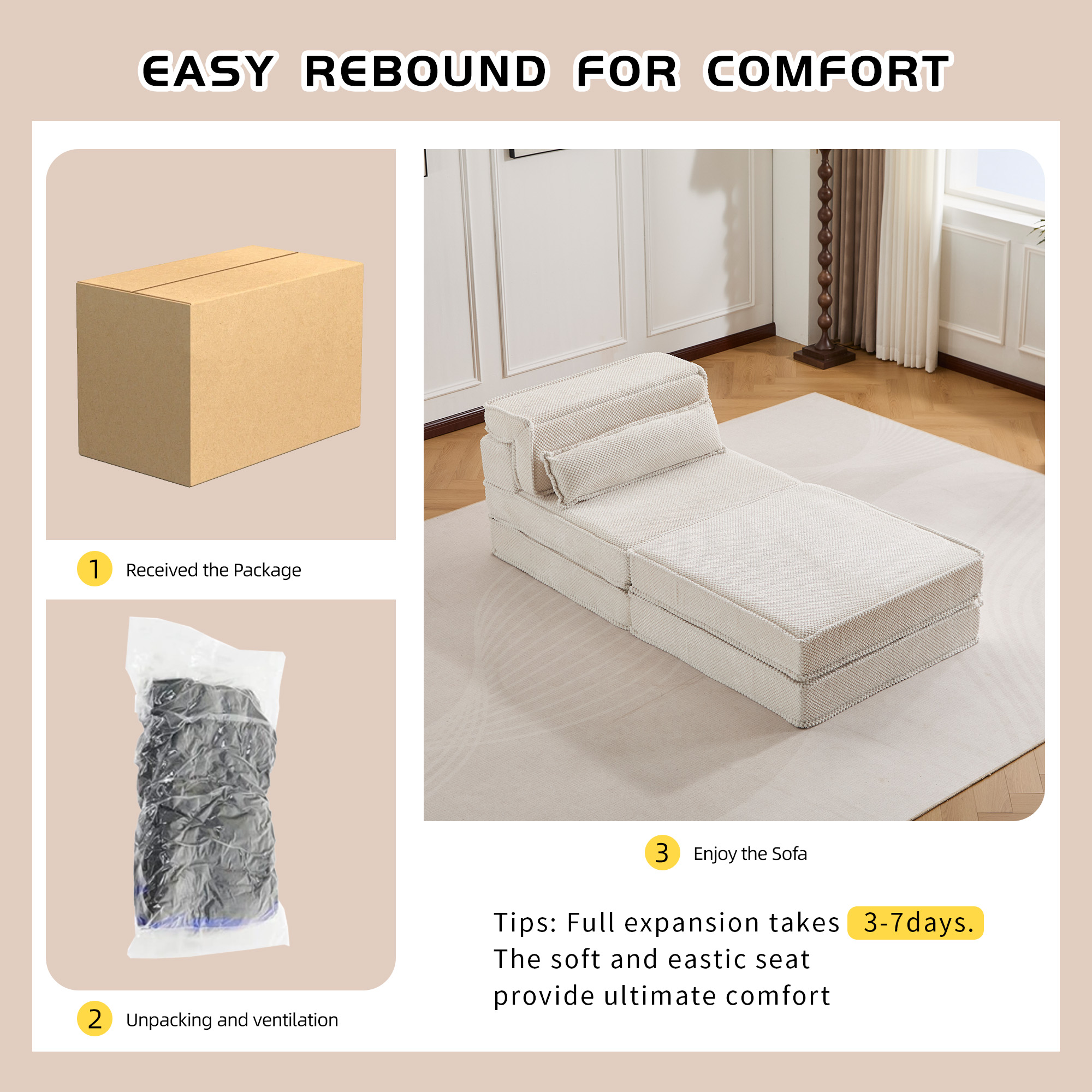 - 【No Assembly Required & Tips】The Convertible Modular Sectional mahjong sofa don't need to assemble. Tips: It takes time for the sofa to expand, Please unpack and wait 48-72 hours for full rebound.