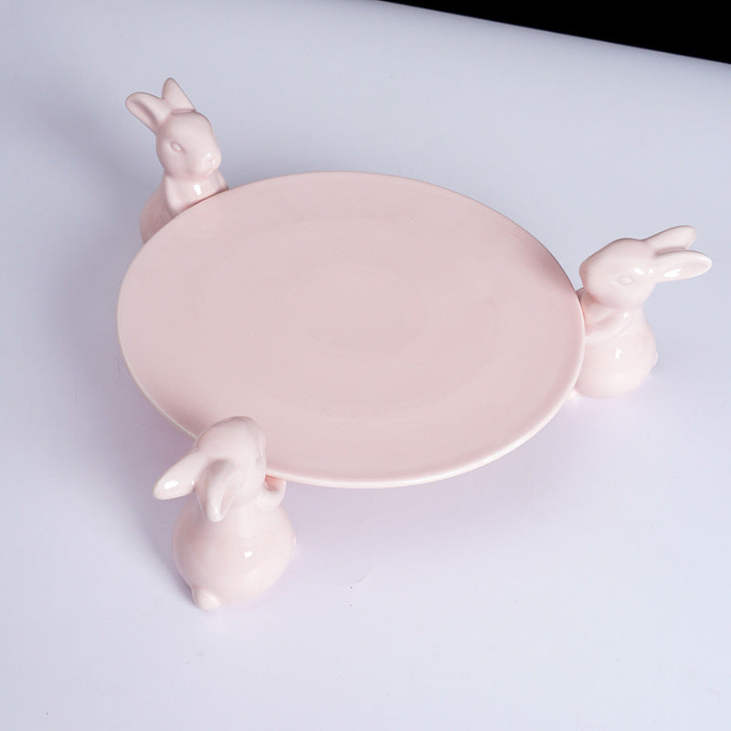 • Adorable Rabbit Design – Features cute rabbit figures supporting the plate, perfect for desserts, fruits, cakes, and more.