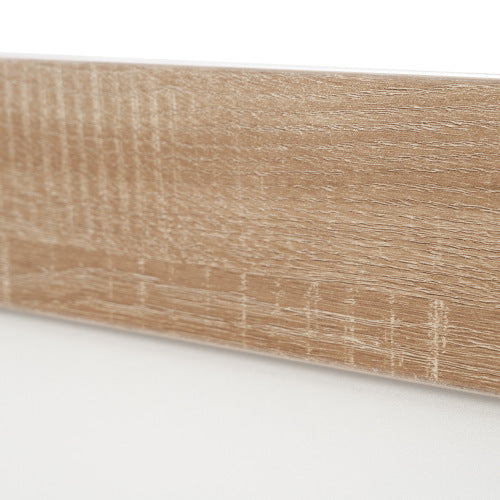 • Zweifarbiges Gestaltung: Der obere Teil des Kopfteils ist in warmem Eiche Dekor, der untere in hellem Alpinweiß gestaltet. In der Blende des Fußteils wiederholt sich das stilvolle Eiche Dekor und sorgt für ein harmonisches Gesamtbild.