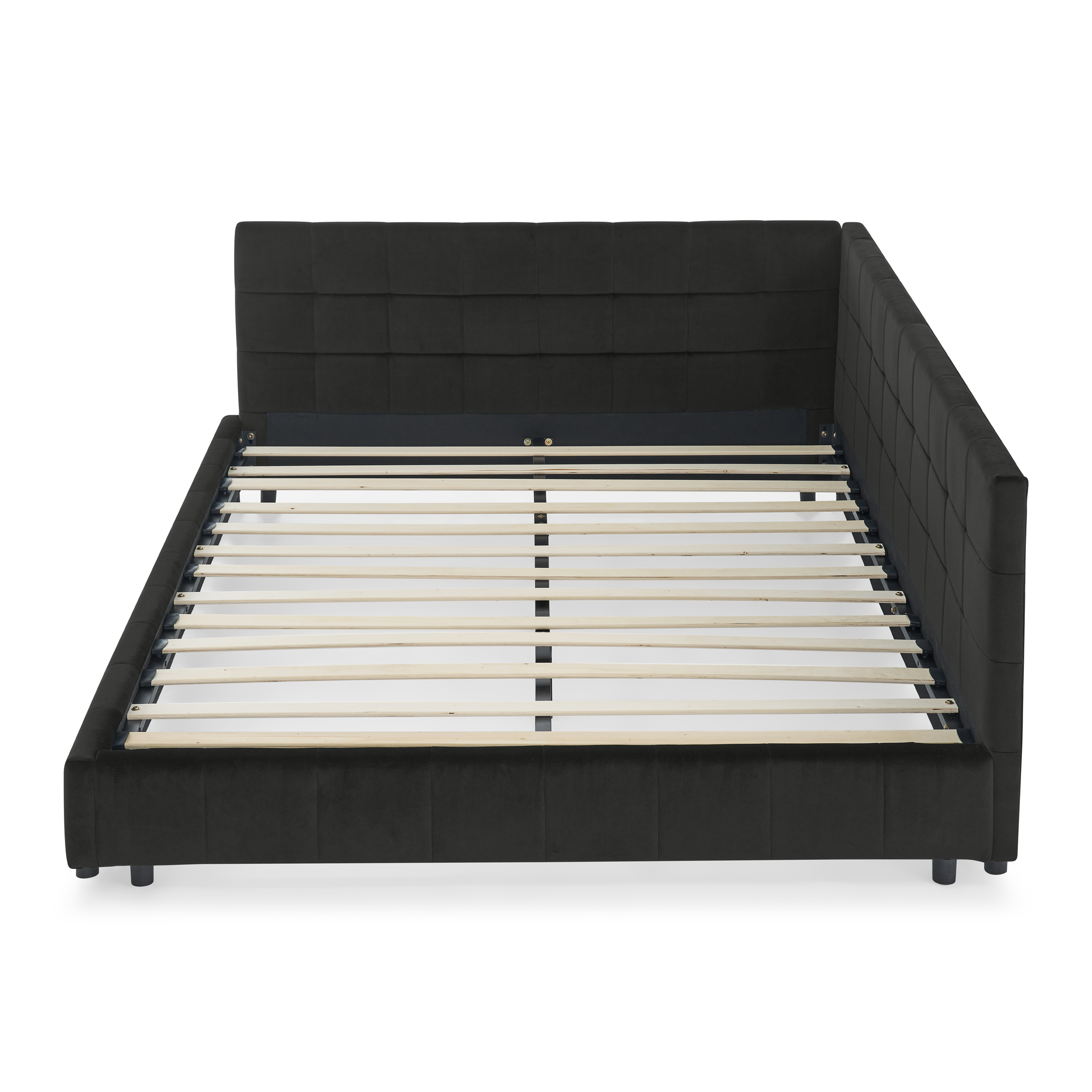Product Name:Queen Size Upholstered Tufted Bed Frame, Sofa Bed Frame with Comfortable Backrest and Armrests, Queen Size Bed for Bedroom, Living Room,Velvet, BLACK(85.5''*64.5''*30.5'')