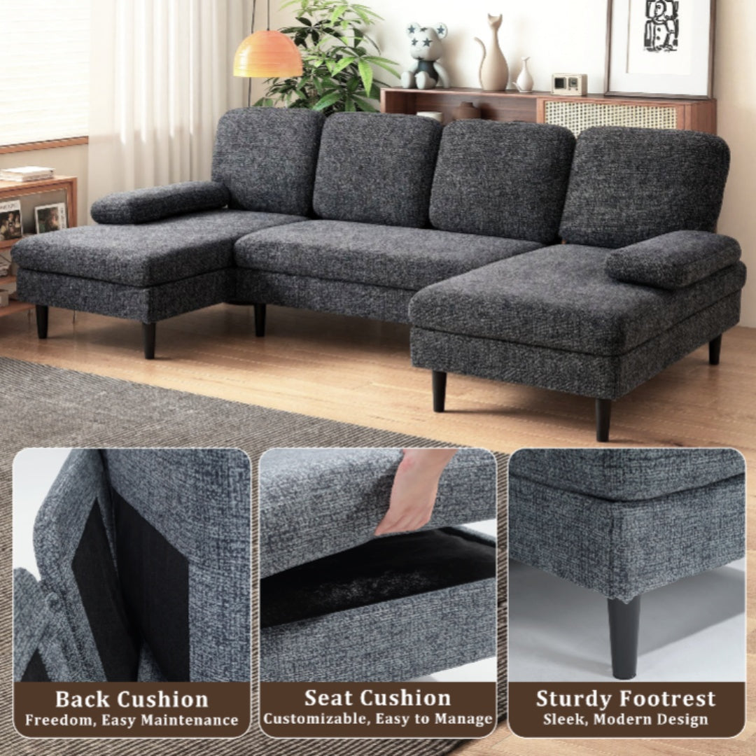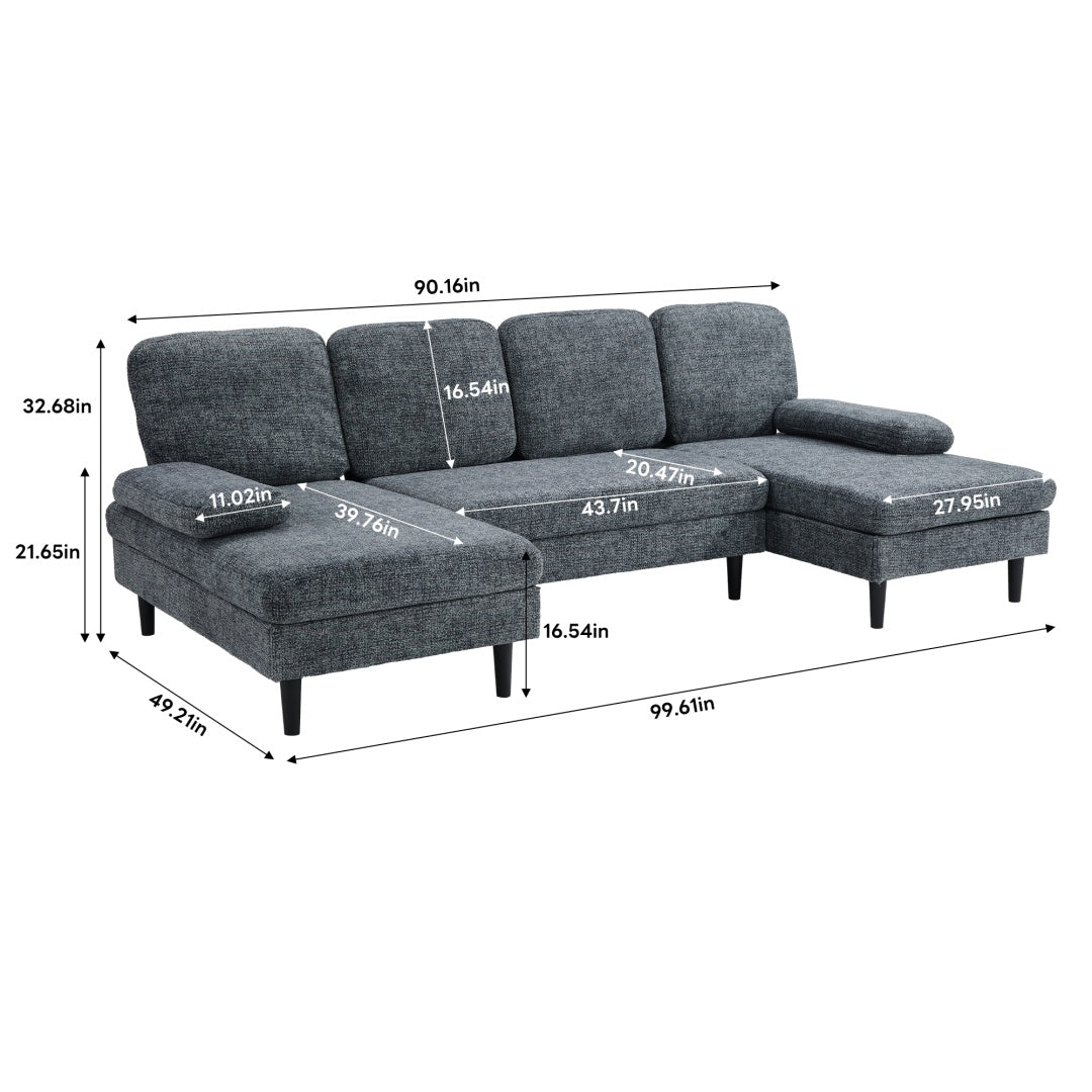 U-shaped Combination Sofa, Double Lounge Chair, Chenille Fabric 4-seat Living Room Furniture
